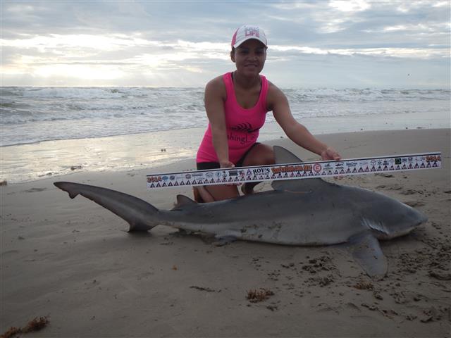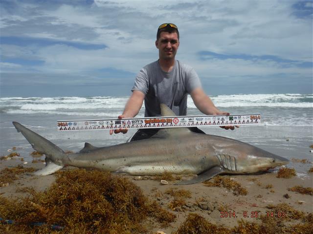 The 11th annual Sharkathon took place on the Padre Island National Seashore starting on Friday, September 26 through Sunday, September 28, 2014 with around 950 anglers in the tournament. Sharkathon is a CPR event, where anglers in shark, redfish, speckled trout, women’s and kids divisions, efficiently, catch, photograph and release their catches. The shark division anglers also tagged and collected valuable fin clips for research. The first place shark winner, Sean Curless, walked away with $20,000 plus an Ocean Kayak Malibu II XL, a Roy’s Bait & Tackle Outfitters custom rod with an Avet 80 W 3-speed reel. Sean Curless, a San Antonio native, also won the most inches prize with a $210.25 check for the $1 per inch of shark he released plus a Jawbone Hammer paired with an Avet 50 Wide 2-speed. Sean’s weekend total of cash and prizes was $23,840.20. The most inches of shark prize goes to the angler with the most cumulative inches of shark species released. The most inches winner isn’t always the shark division angler that catches the largest shark, and most times it is the angler that catches the largest quantity of sharks.